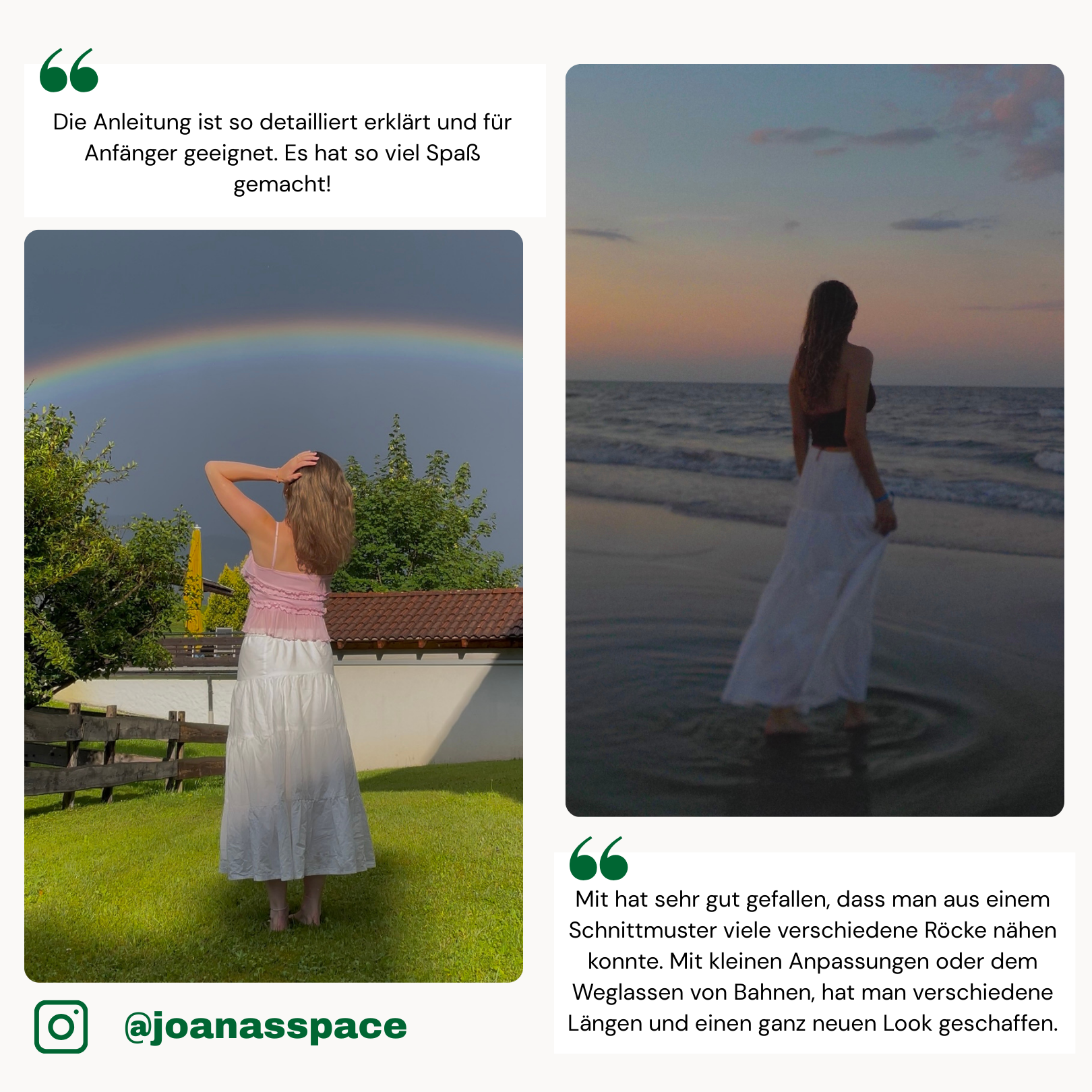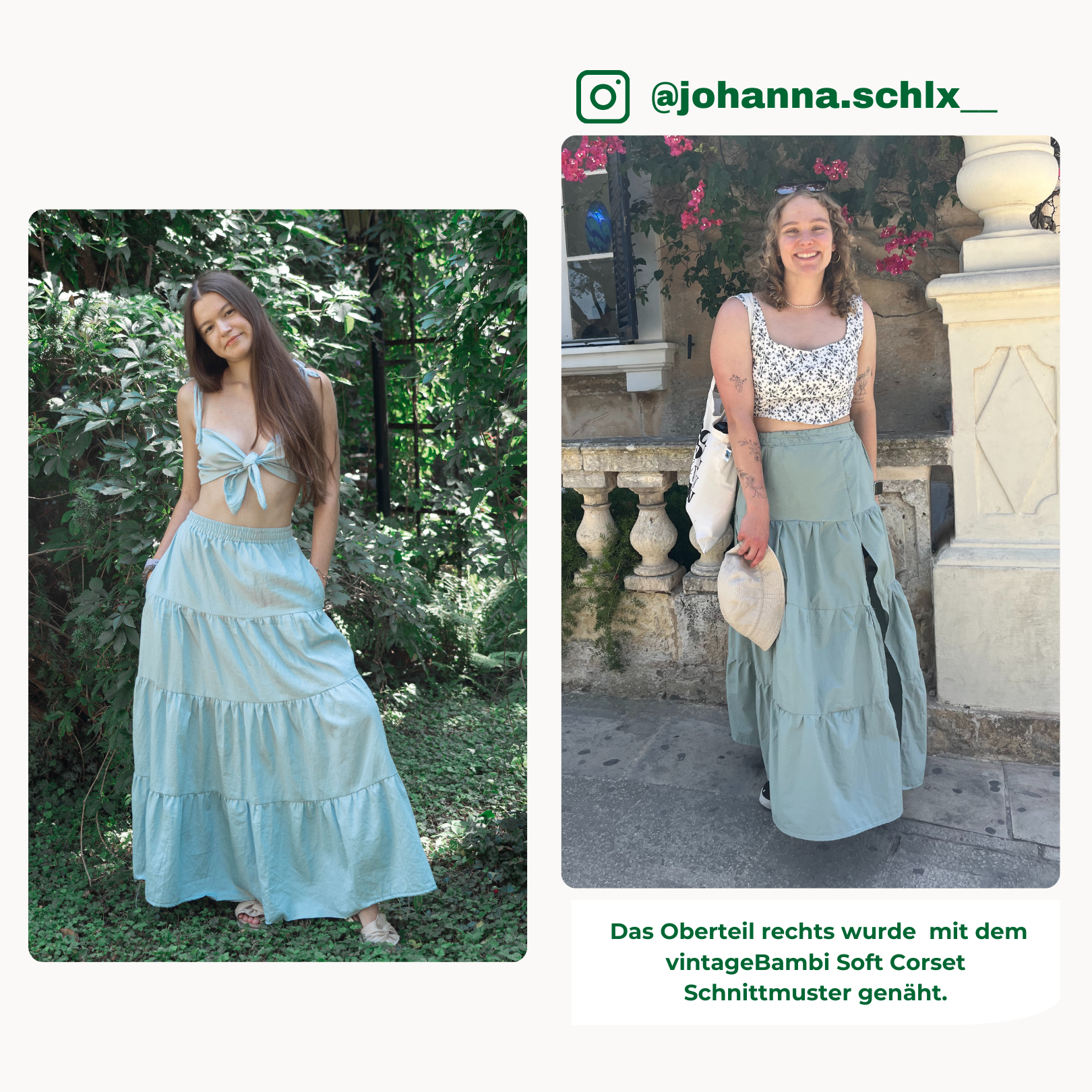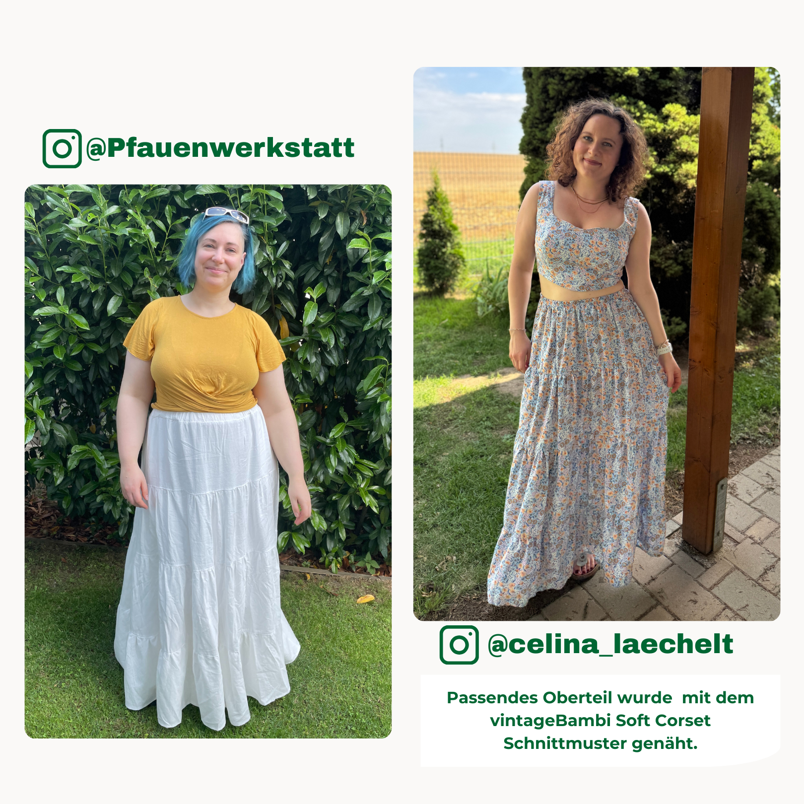 Ein wichtiger Hinweis: Bei diesem Design lag der Fokus darauf, ein voluminöses, schwingendes Kleidungsstück zu schaffen, das wie eine Fairy-Traumwelt wirkt. Das bedeutet, dass für dieses Projekt relativ viel Stoff benötigt wird (Stoffangabe findest du in den Produktbildern) – bitte beachte das bei deiner Planung. Wenn du auf der Suche nach einem besonderen, verspielten Maxirock bist, ist der Anna Maxirock genau das Richtige für dich!