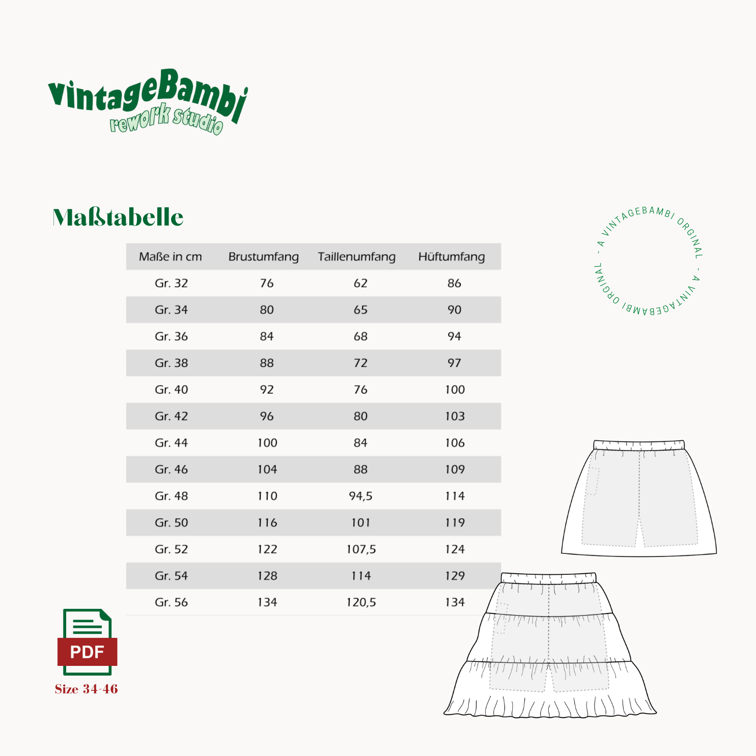 Die Digitale Datei enthält Nähanleitung und Schnittmuster, Videoanleitungen gibt es auch auf Instagram,TikTok und bald auch YouTube @vintage.Bambi.