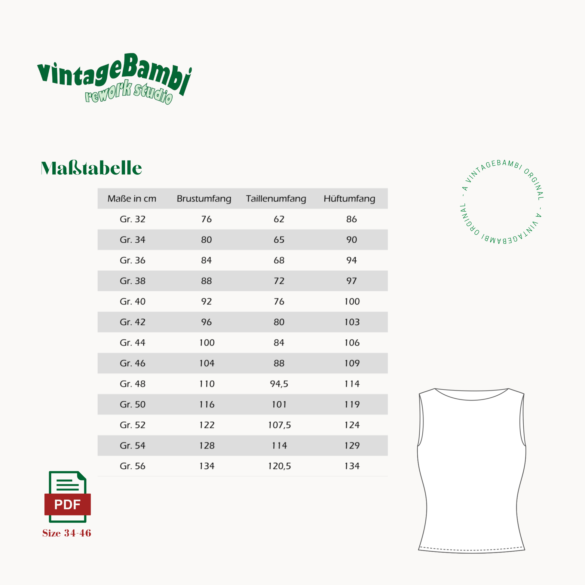 Die Digitale Datei enthält Nähanleitung und Schnittmuster, Videoanleitungen gibt es auch auf Instagram,TikTok und bald auch YouTube @vintage.Bambi.