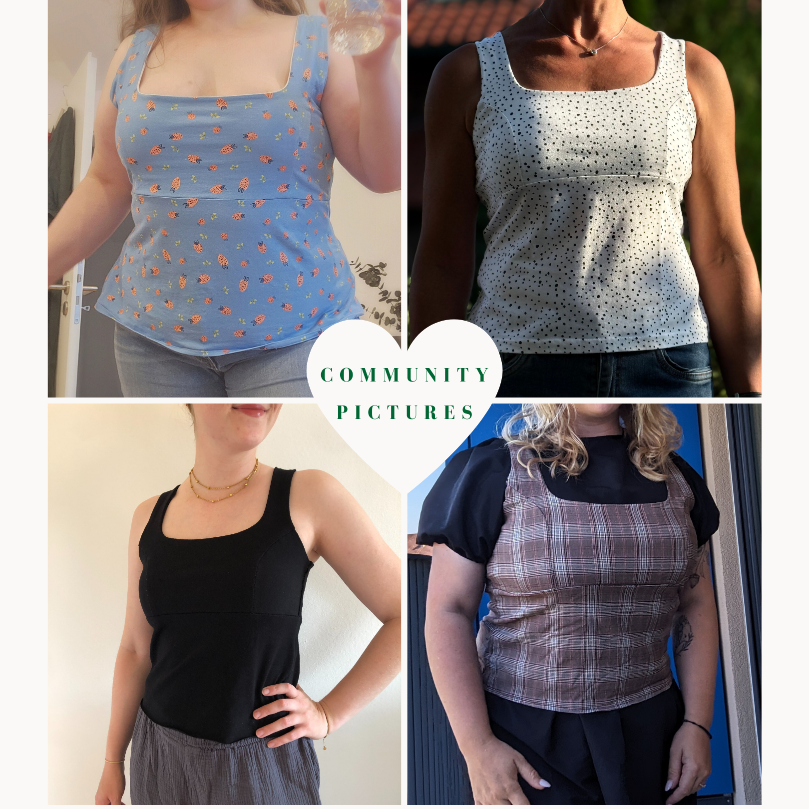 The Rosi Top is characterized by its modern square neckline and high, figure-flattering empire seam under the bust. It is versatile and can look both romantic and playful or elegant, depending on the fabric you choose. The double layer of fabric in the top keeps it opaque and provides support, yet is still easy to sew, making it ideal for beginners.