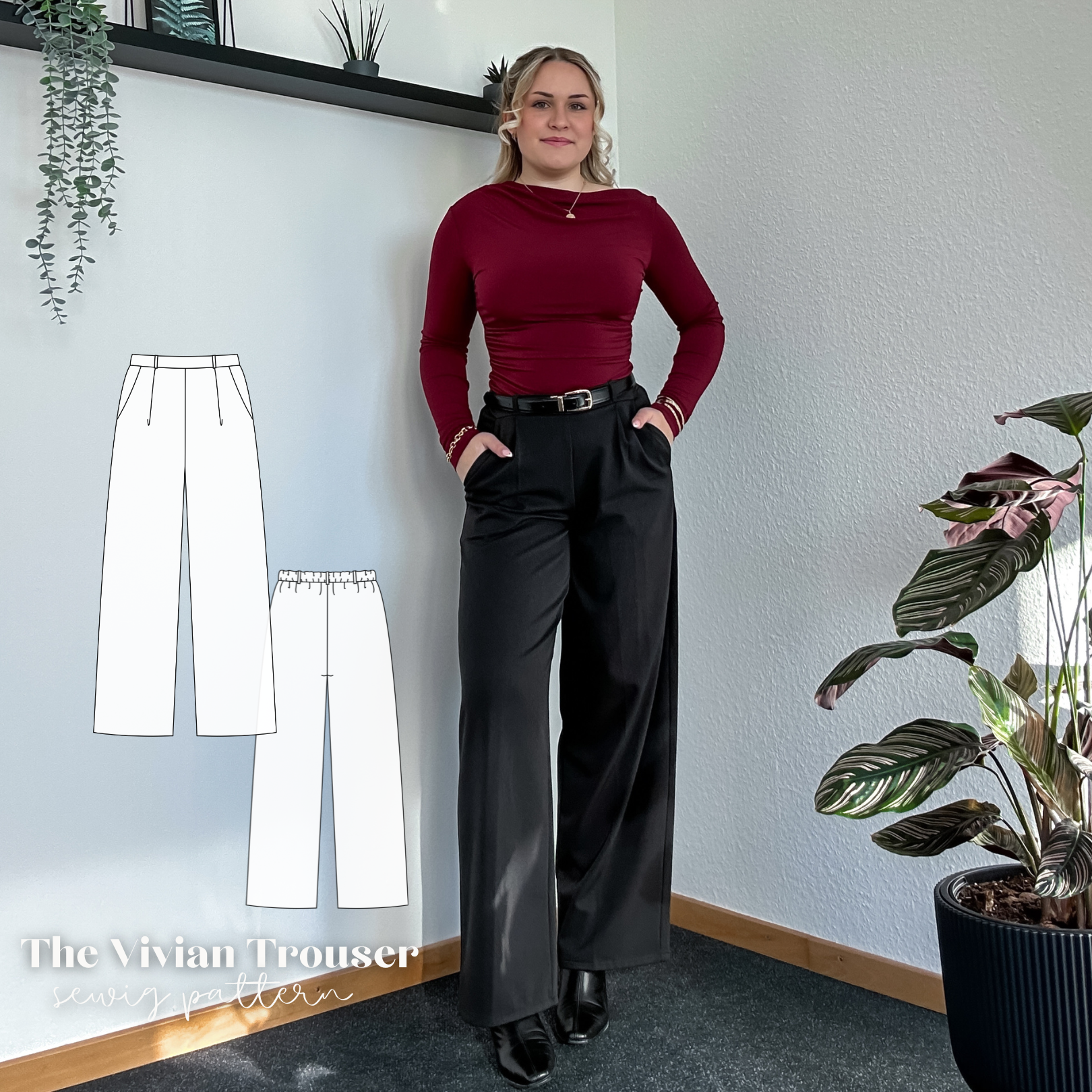 Here you can get our exclusive Vivian suit pants pattern. It will be sent digitally along with very detailed and illustrated instructions. The instructions describe each sewing step in detail and include additional general sewing tips and further tips on how to adapt the pattern to your needs.