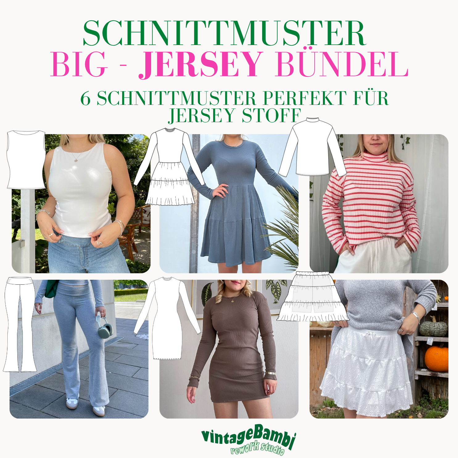 Das perfekt gemixte Schnittmuster Bündel für alle die es lieben mit Jersey Stoffen zu nähen! Dieses Bündel enthält sechs Best-Seller Schnittmuster von vintageBambi für den reduzierten Bündel Preis! Alle diese Muster sind perfekt um sie mit Jersey oder anderen dehnbaren Stoffen zu nähen.