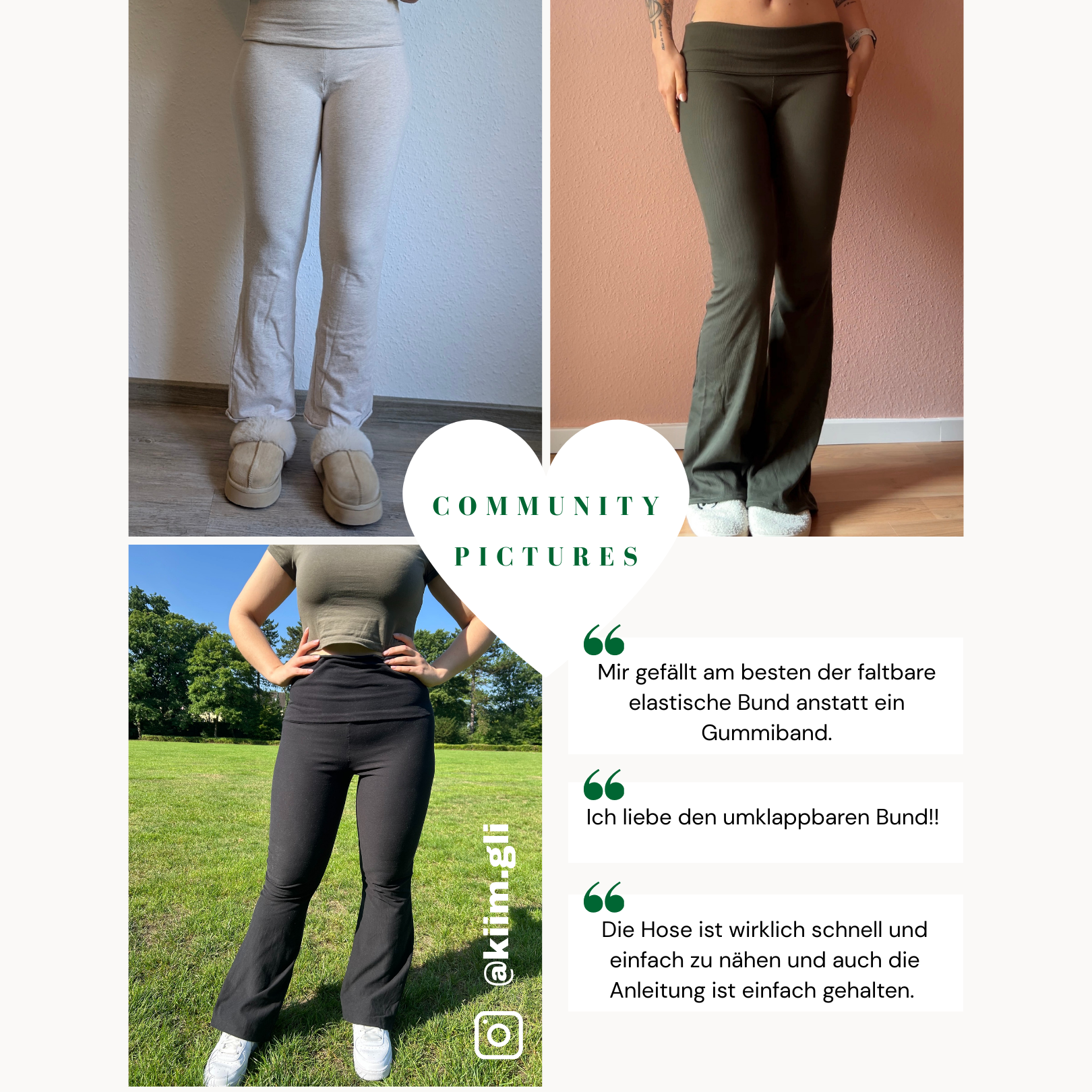 Die Leggings bieten einen bequemen Sitz ohne einschneidendes Gummiband und sind damit ein Must-have für den Alltag. Der lange Bund, der umgeschlagen werden kann, verleiht ihnen einen besonderen Look. Diese Leggings sind nicht nur gemütlich, sondern auch stilvoll – ideal für Anfänger*innen, da sie einfach zu nähen sind und sich perfekt an den Körper anpassen lassen.