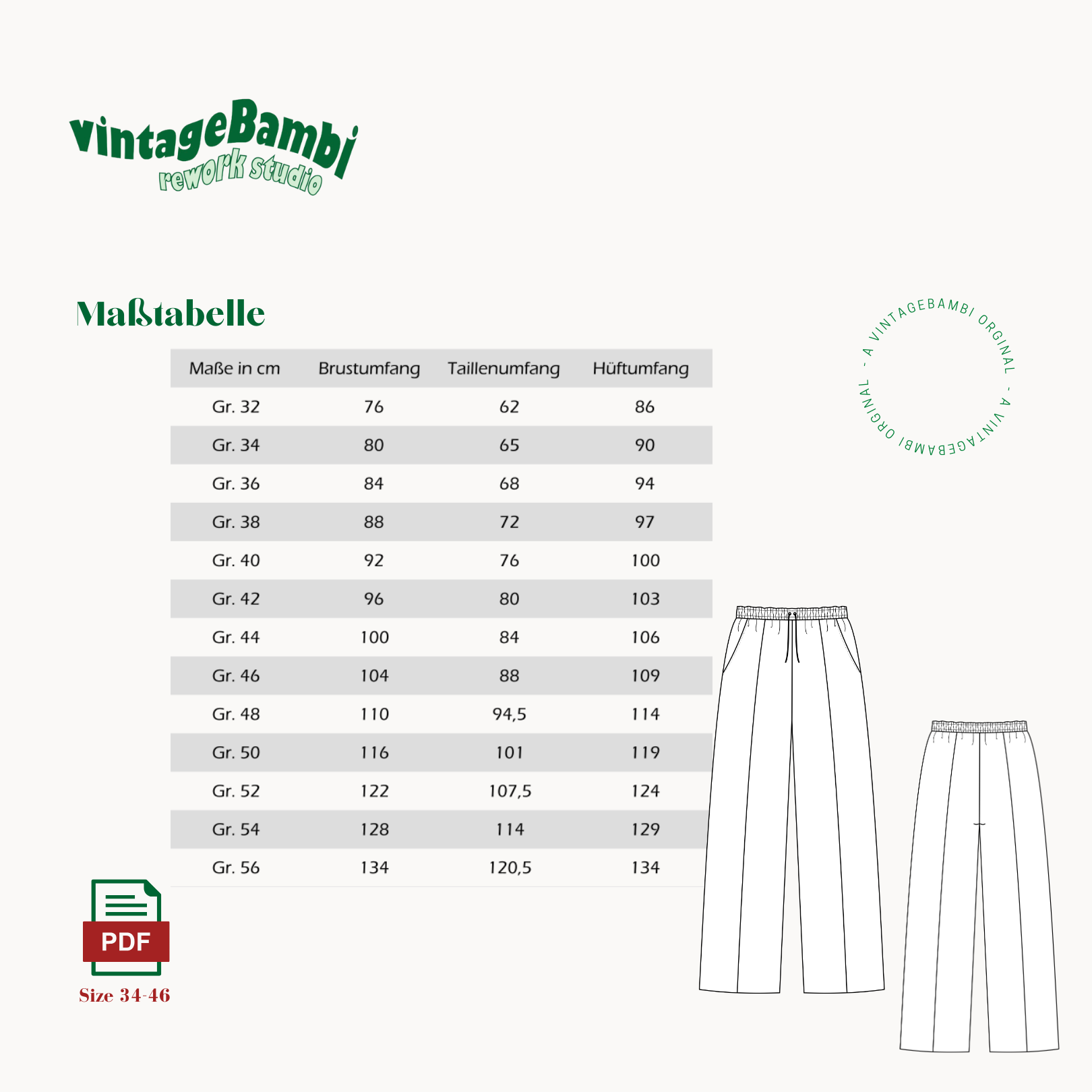 Die Digitale Datei enthält Nähanleitung und Schnittmuster, Videoanleitungen gibt es auch auf Instagram,TikTok und bald auch YouTube @vintage.Bambi.