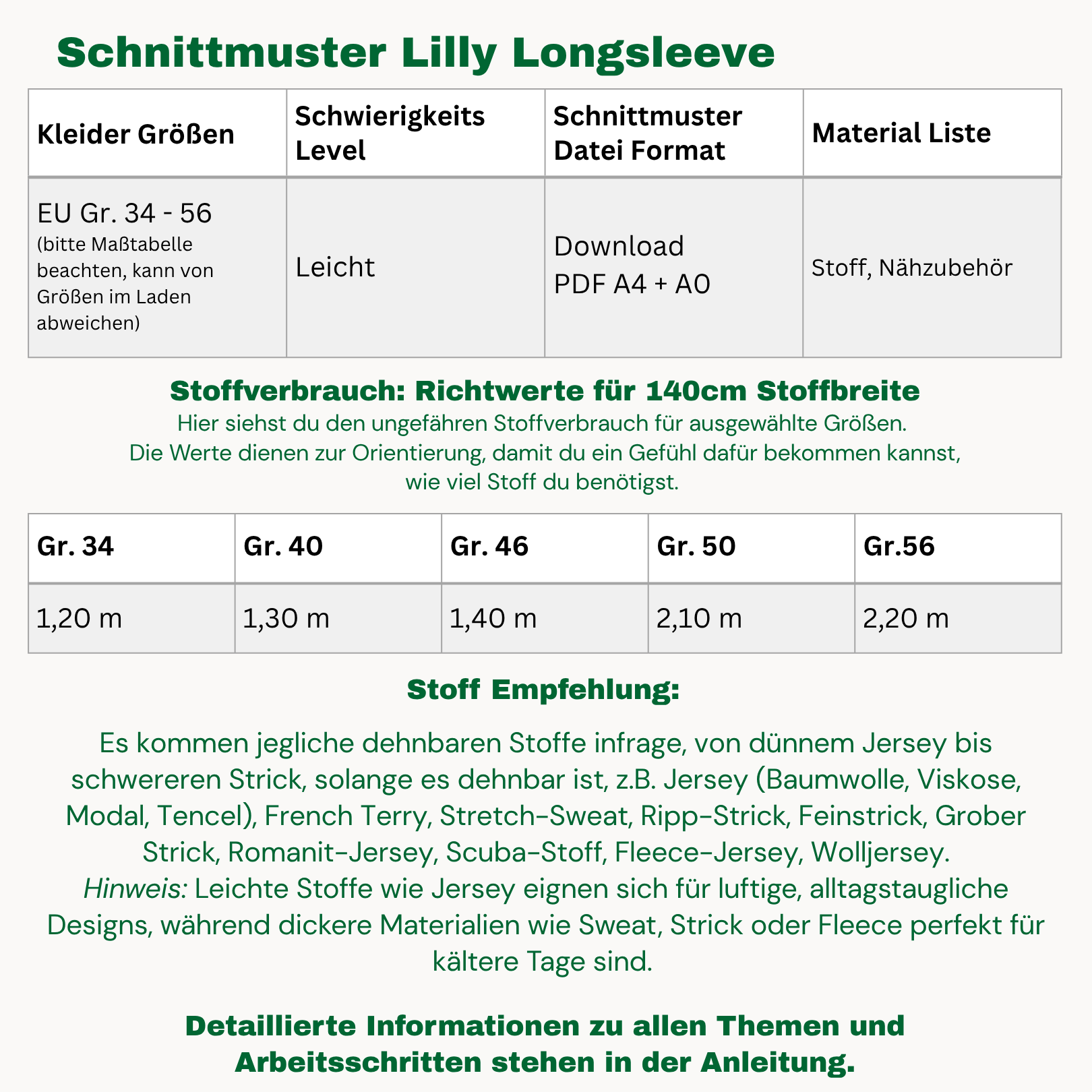 Lilly Longsleeve Schnittmuster DEUTSCH