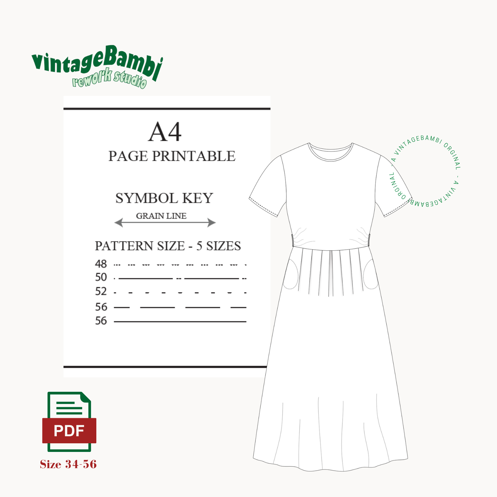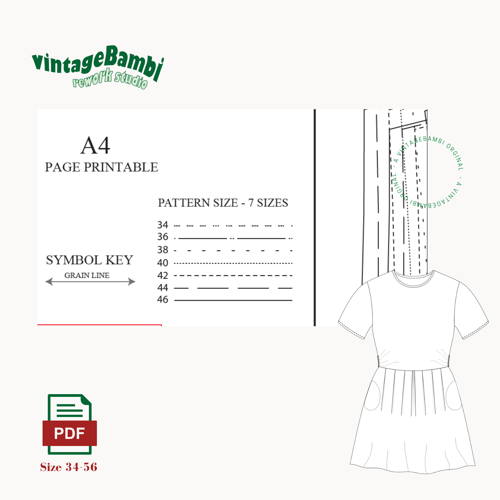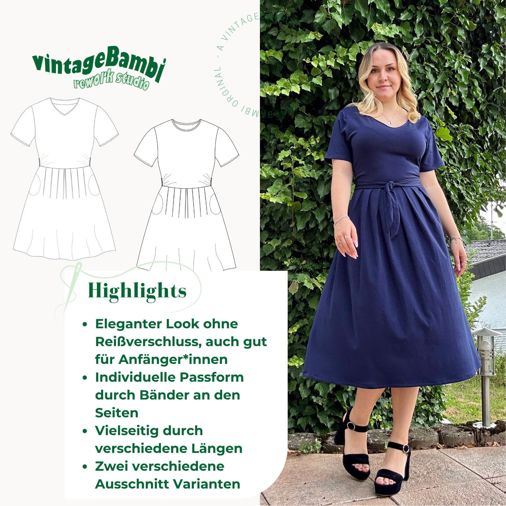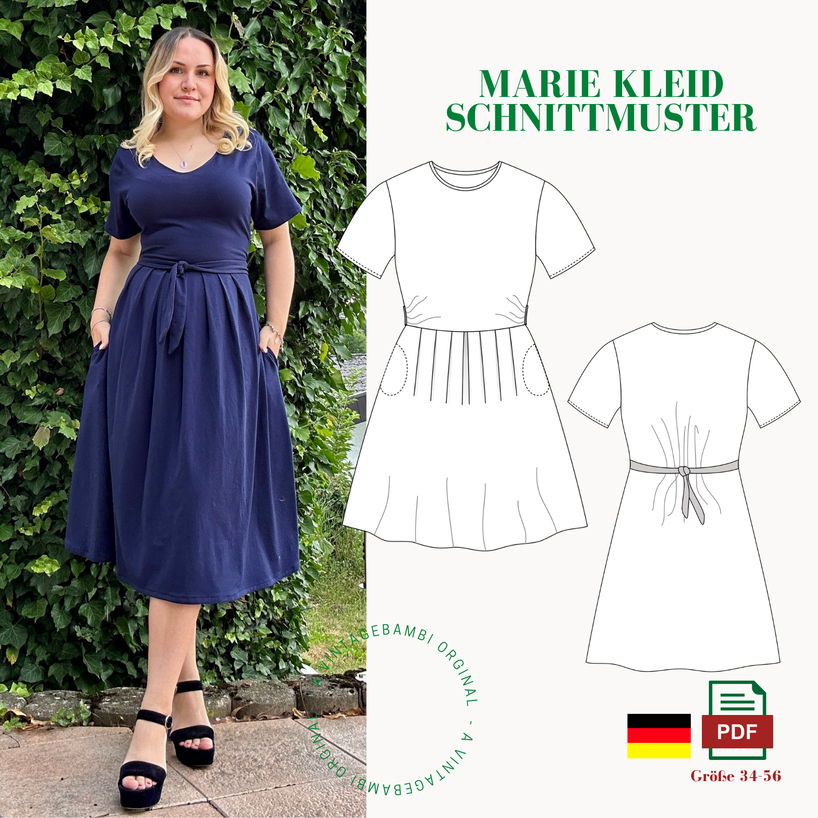 Die Digitale Datei enthält Nähanleitung und Schnittmuster, Videoanleitungen gibt es auch auf Instagram,TikTok und bald auch YouTube @vintage.Bambi.