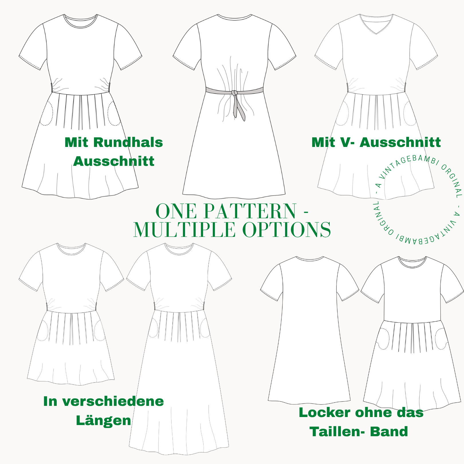 Dieses Schnittmuster ist geistiges Eigentum von VintageBambi - rework studio! Dieses Schnittmuster darf nicht kopiert, verkauft oder kommerziell genutzt werden! Alle Verstöße werden zur Anzeige gebracht! Dieses Schnittmuster ist einzig und allein für die private Nutzung gedacht.