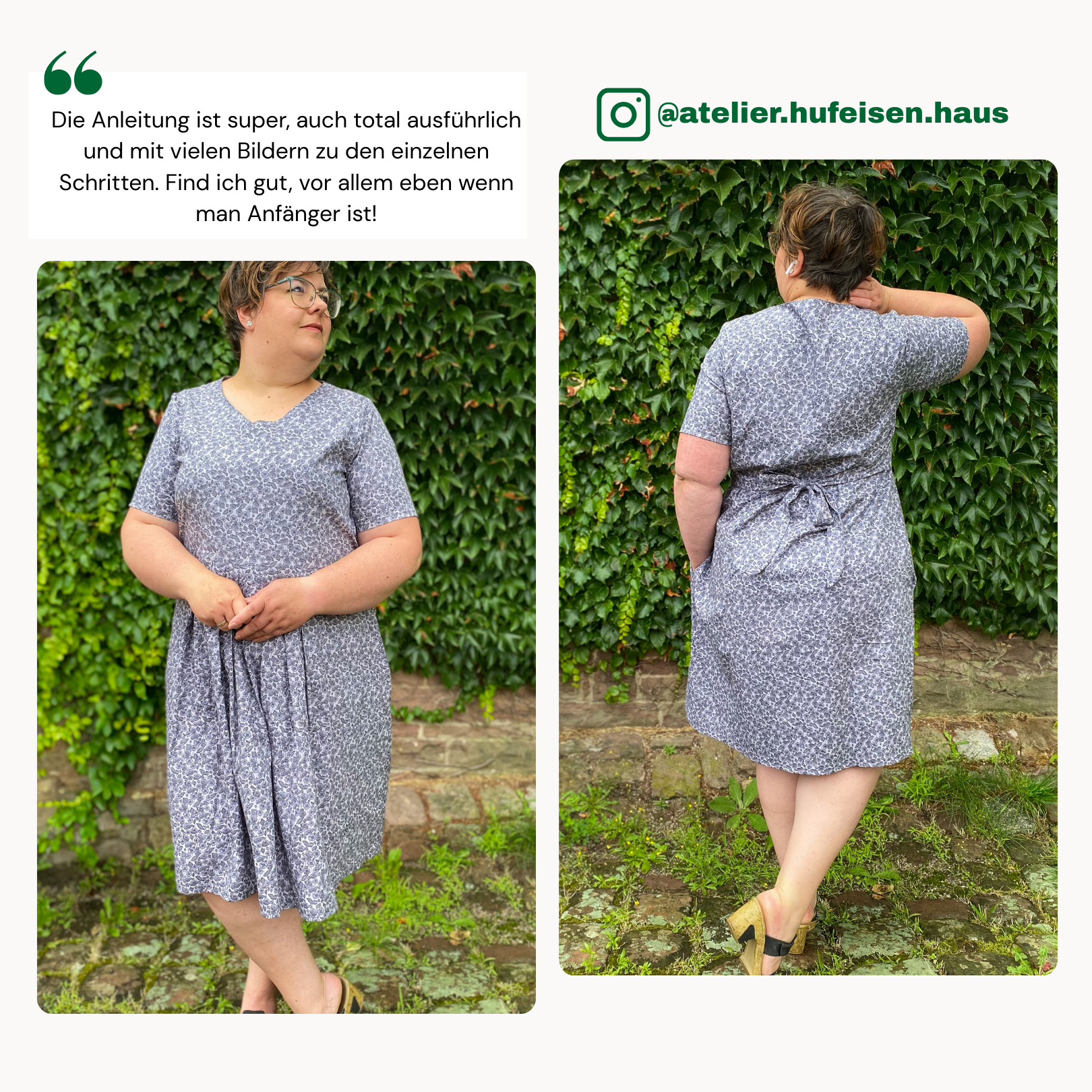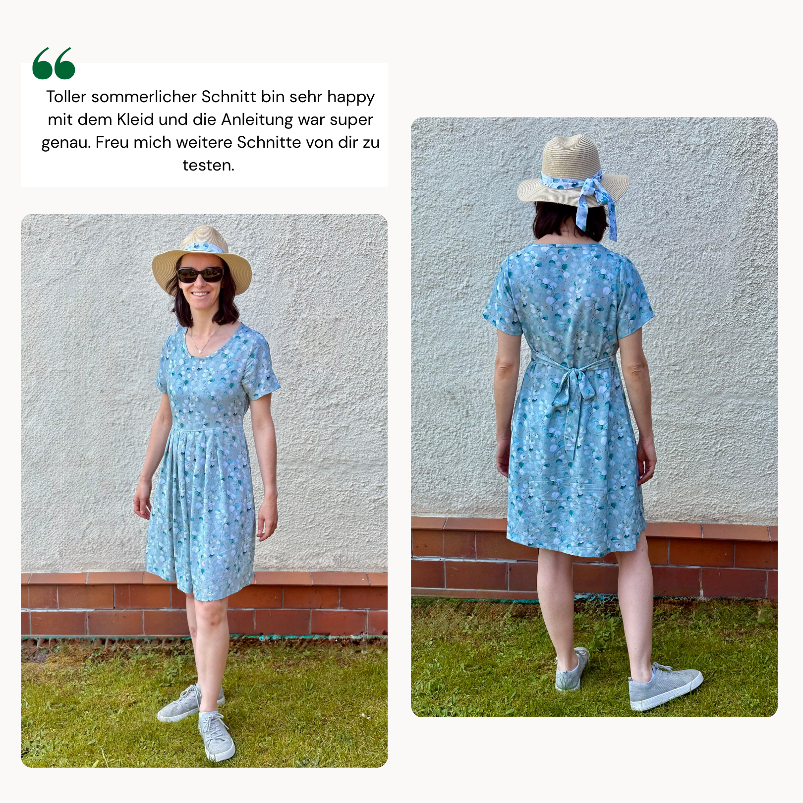 Je nach Stoffwahl kannst du das Marie Kleid lässig oder elegant umsetzen, perfekt für zu Hause, fürs Büro oder besondere Anlässe. Das Schnittmuster lässt sich außerdem ganz einfach verlängern oder kürzen: Nähe es als Maxikleid, Minikleid oder sogar als süße Bluse. Ein vielseitiger Allrounder, den du bestimmt mehr als einmal nähen willst!