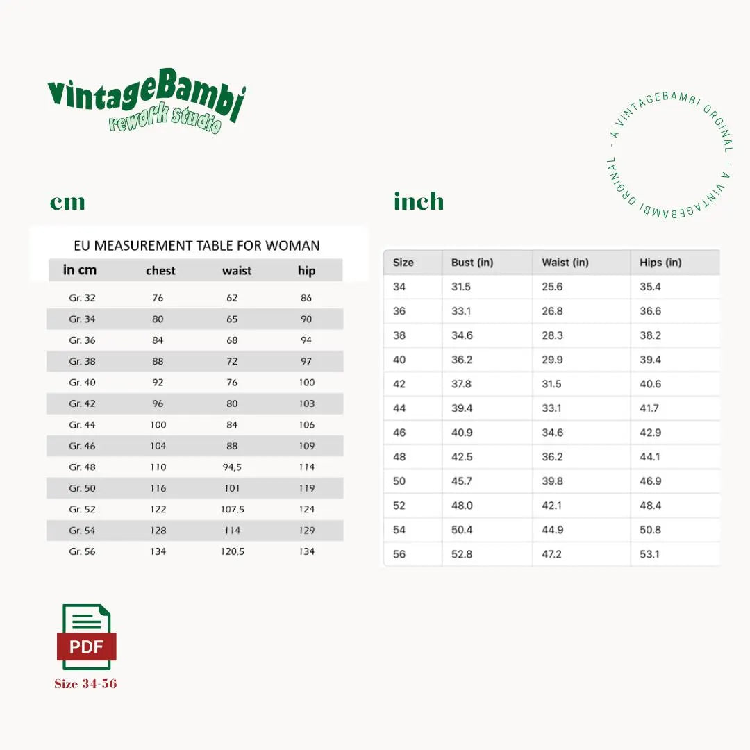 The digital file contains sewing instructions and a pattern. Video instructions are also available on Instagram ,TikTok and soon also YouTube @vintage.Bambi.
