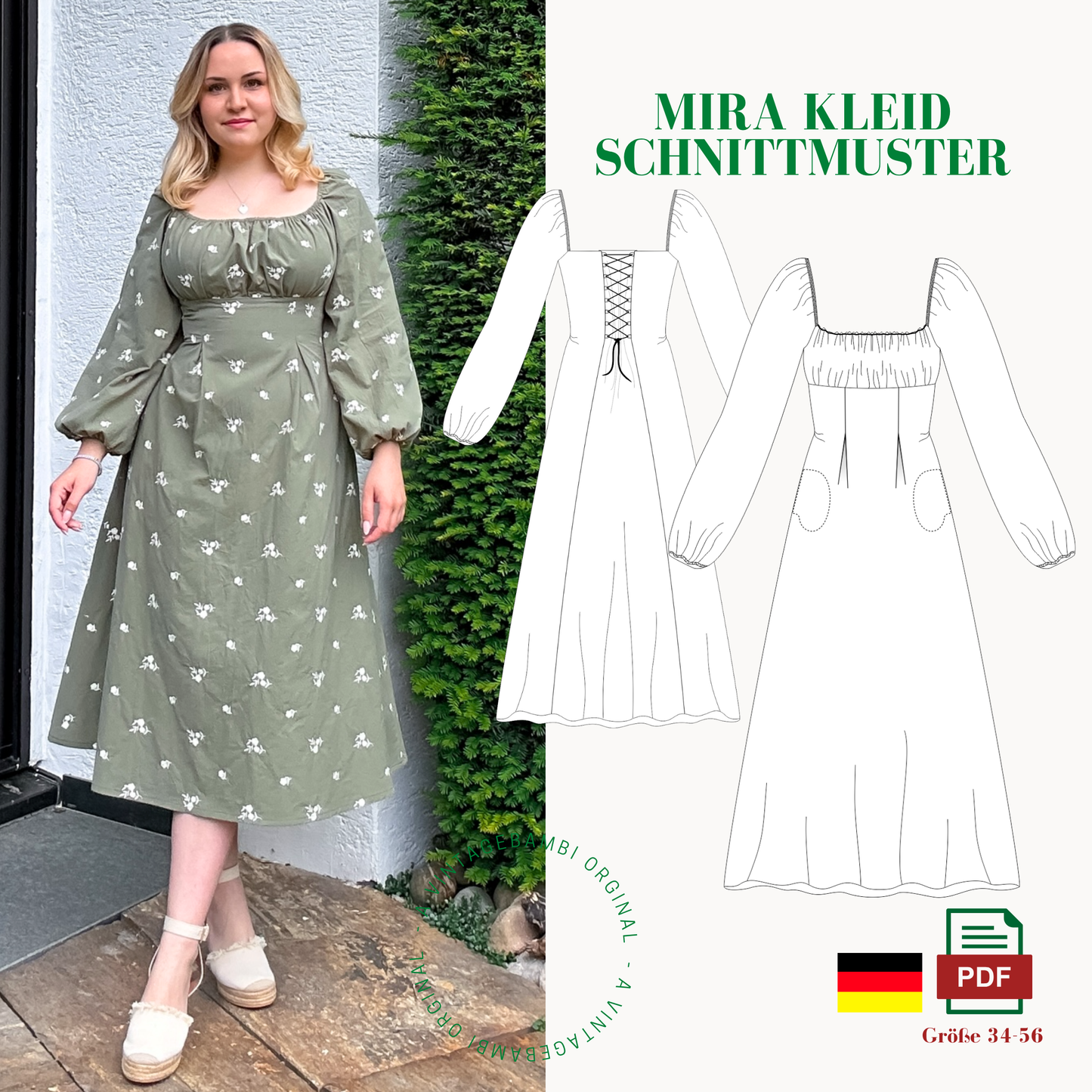 Hier bekommst du unser exklusives Mira Kleid Schnittmuster. Es wird mit einer ausführlichen und bildlichen Anleitung zum Download bereit gestellt, die dir hilft, das Kleid zu nähen und Schnittmuster an deinen Körper anzupassen.