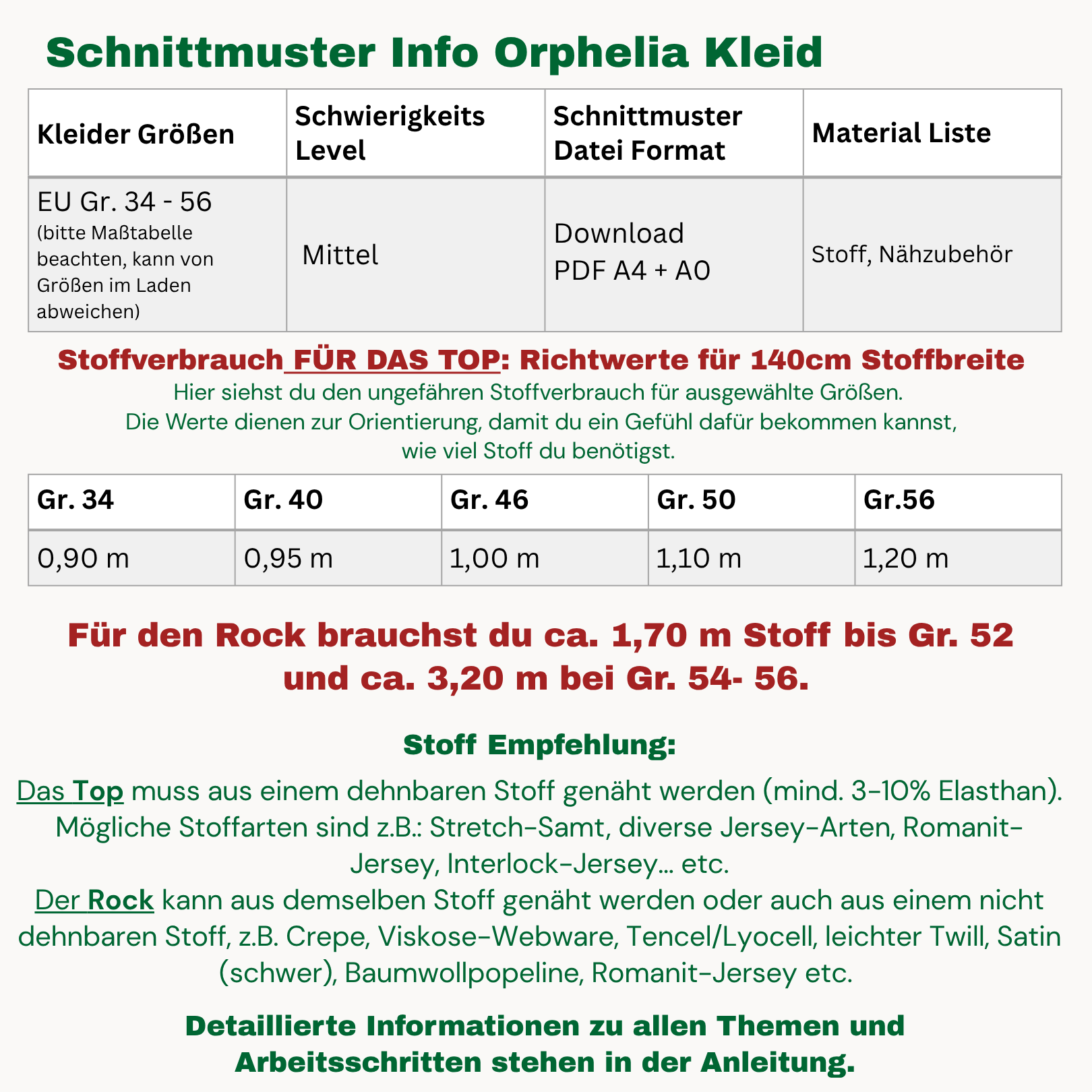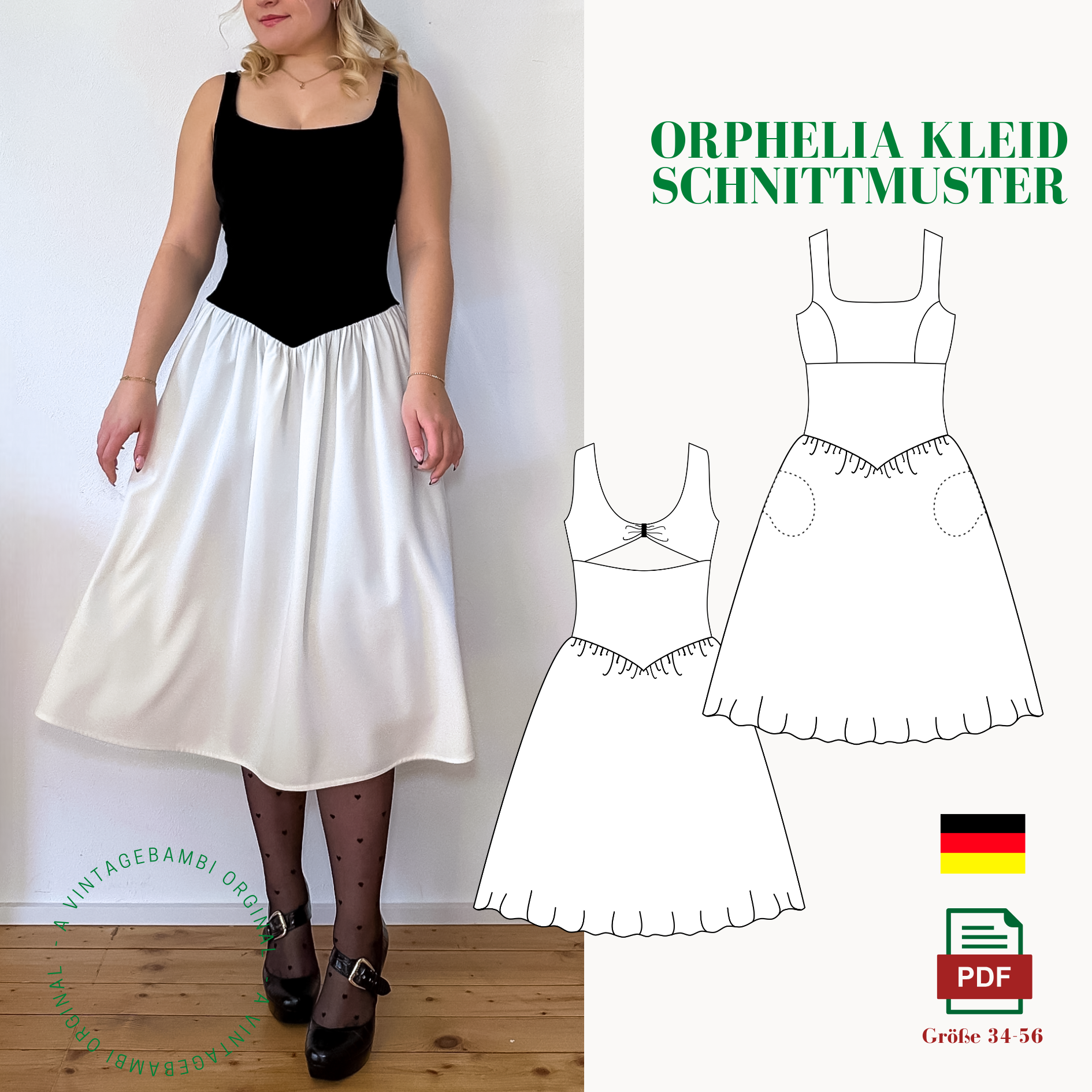 Hier bekommst du unser exklusives Orphelia Kleid Schnittmuster. Es wird mit einer ausführlichen und bildlichen Anleitung geliefert, die dir hilft, das Kleid zu nähen.