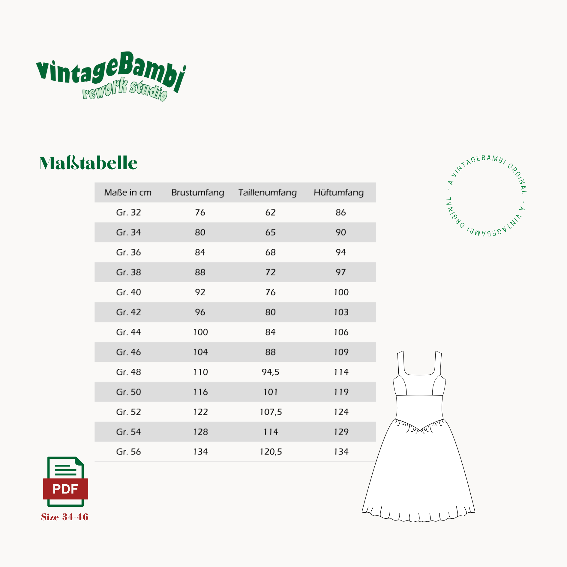 Die Digitale Datei enthält Nähanleitung und Schnittmuster, Videoanleitungen gibt es auch auf Instagram,TikTok und bald auch YouTube @vintage.Bambi.