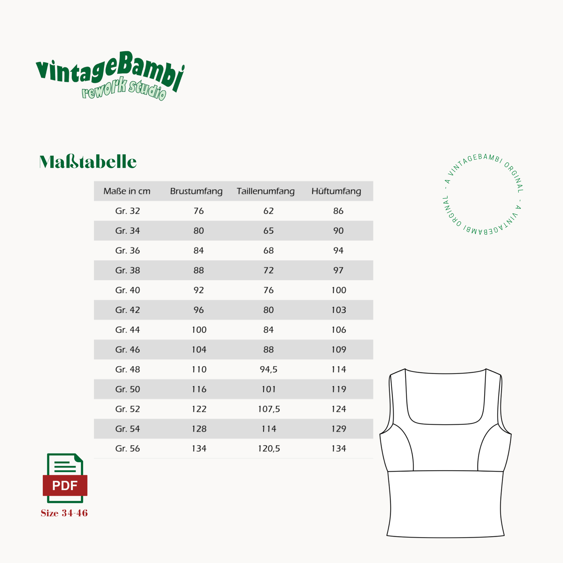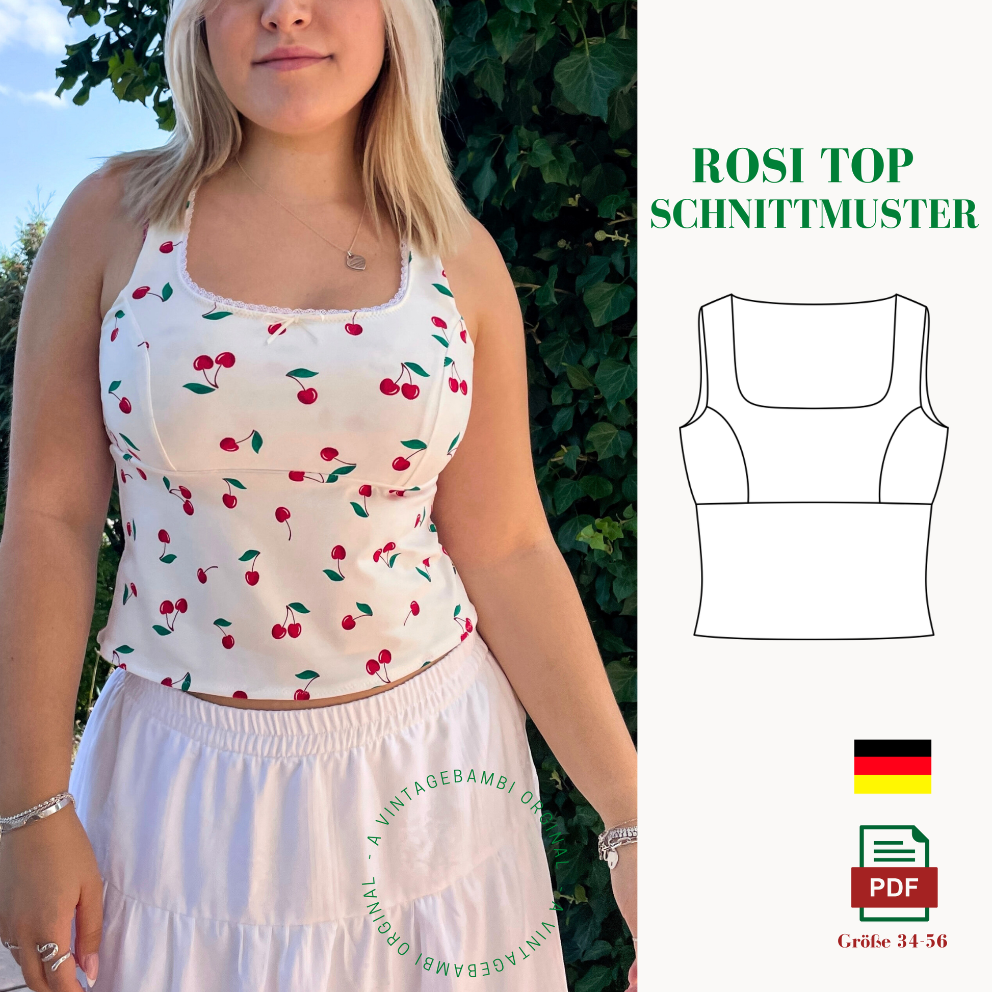 Die Digitale Datei enthält Nähanleitung und Schnittmuster, Videoanleitungen gibt es auch auf Instagram,TikTok und bald auch YouTube @vintage.Bambi.
