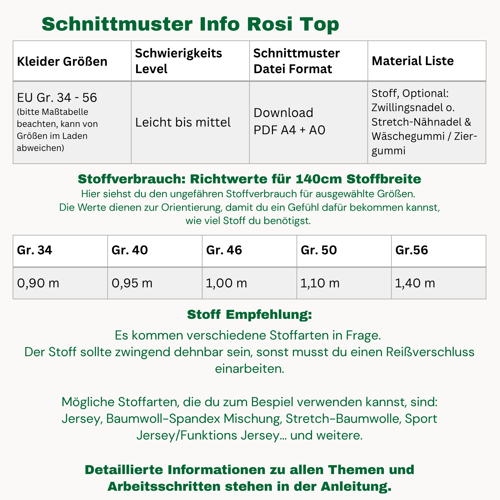 Hier bekommst du unser exklusives Rosi Top Schnittmuster. Es wird mit einer ausführlichen und bildlichen Anleitung geliefert.