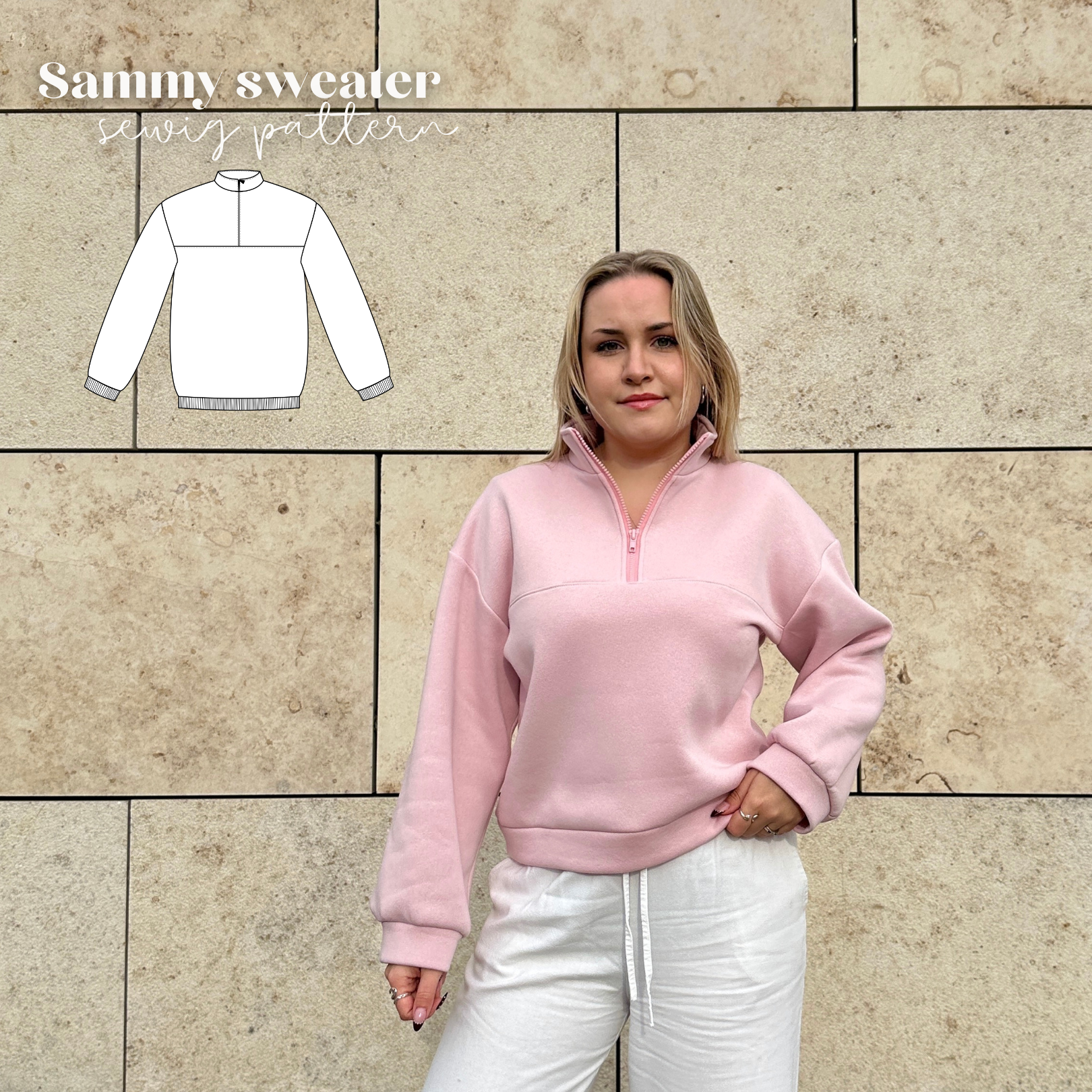 The Sammy Sweatshirt is a cosy, casual troyer with a half-length zip at the front, perfect for anyone who likes to be comfortable yet stylish. The loose, oversized fit makes the sweatshirt completely unisex and can be sewn for absolutely anyone, making it a great project or gift. The long sleeves and relaxed fit create a super cosy look, but can easily be shortened or adjusted to suit your individual style.