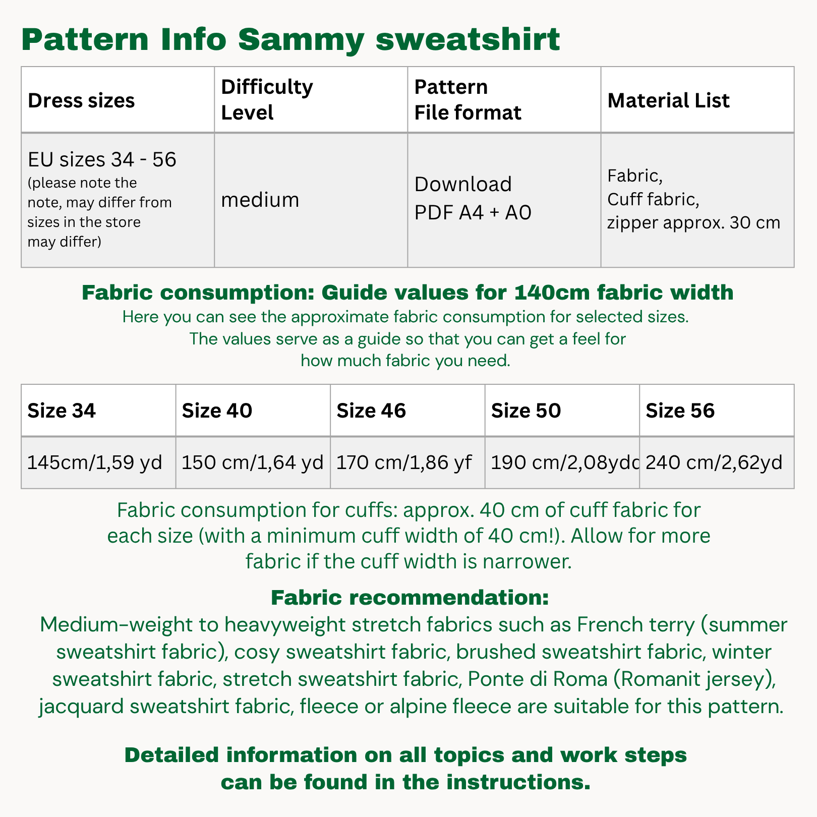 Depending on the fabric you choose, Sammy can look sporty, cosy or even a little chic – a real all-rounder for any wardrobe. The dropped shoulders and loose fit make it particularly modern and comfortable to wear. An uncomplicated, versatile pattern that you'll want to sew again and again!