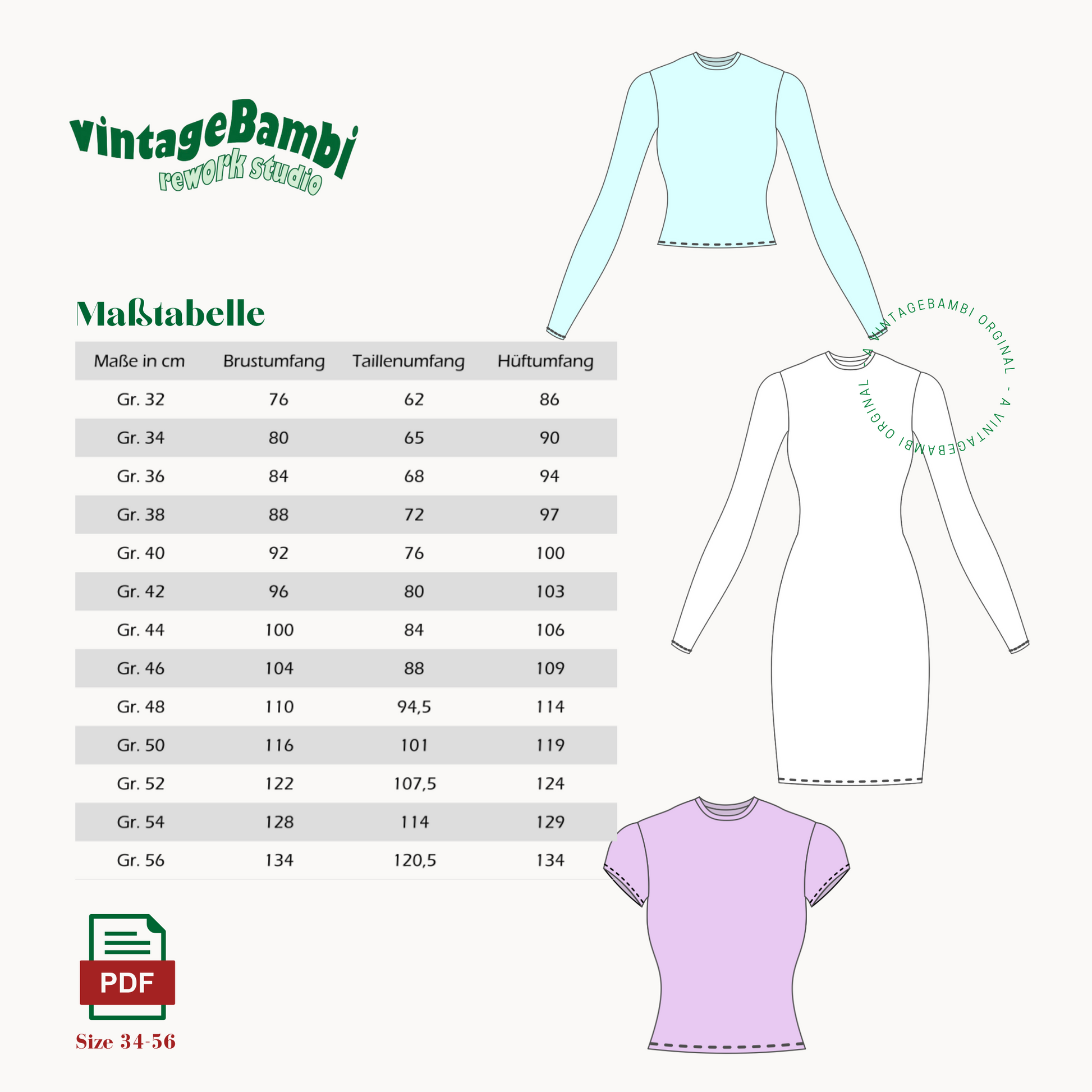 Die Digitale Datei enthält Nähanleitung und Schnittmuster, Videoanleitungen gibt es auch auf Instagram,TikTok und bald auch YouTube @vintage.Bambi.