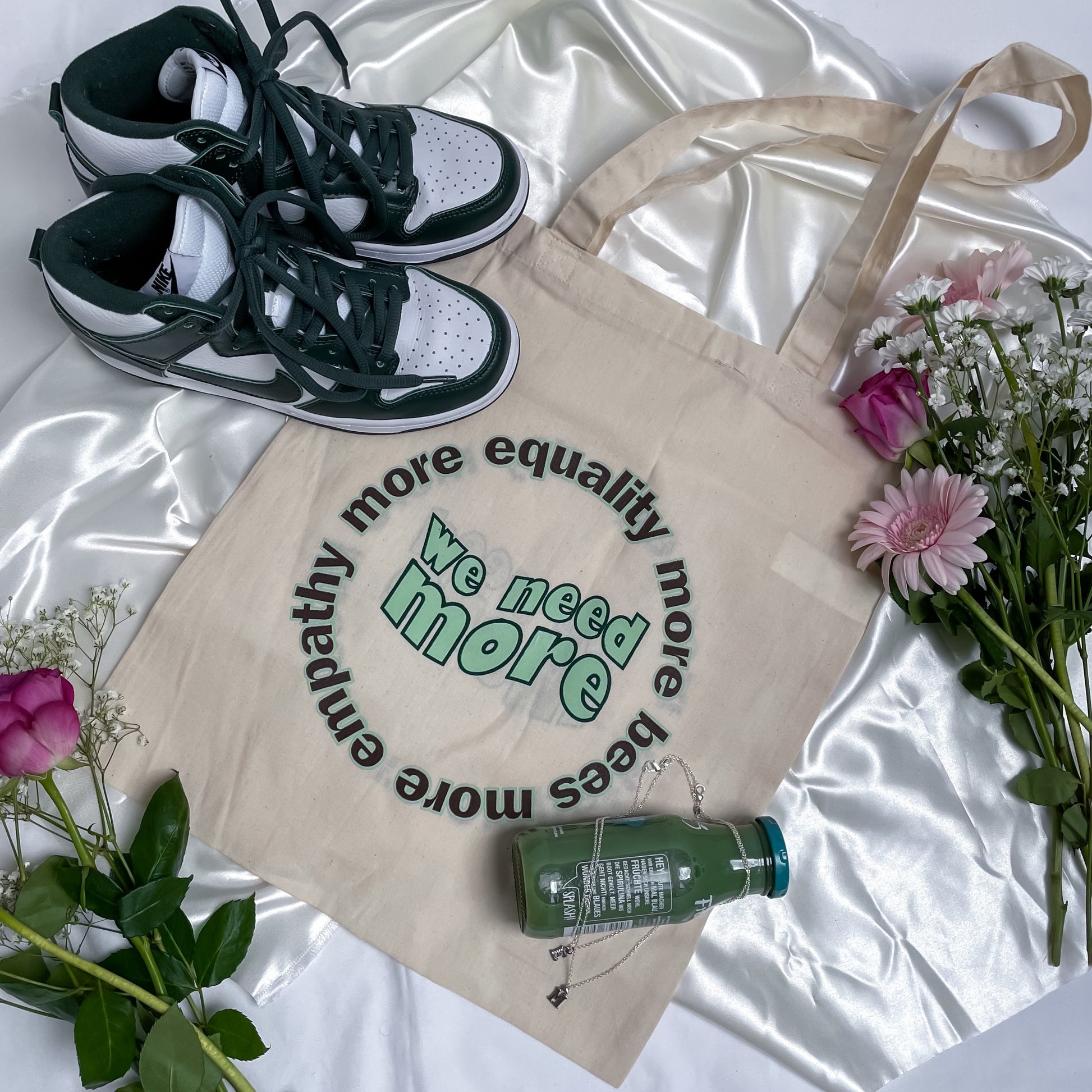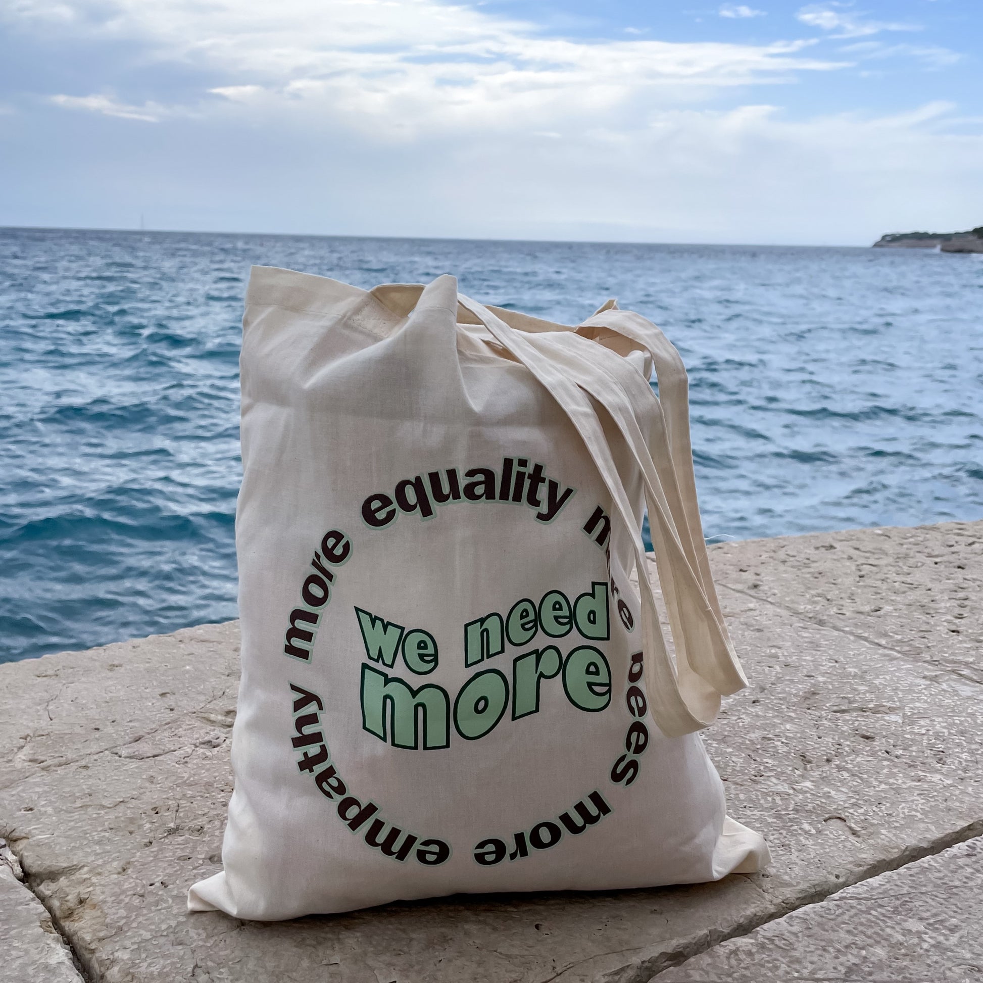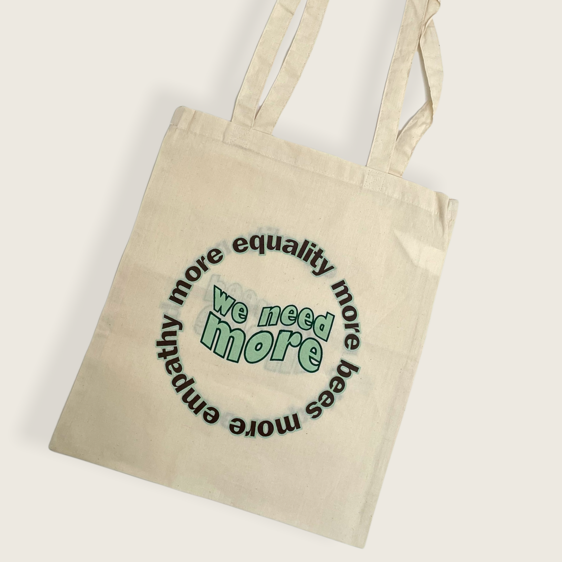 This bag is made of natural cotton and it is printed climate neutral. The same print is on both sides.